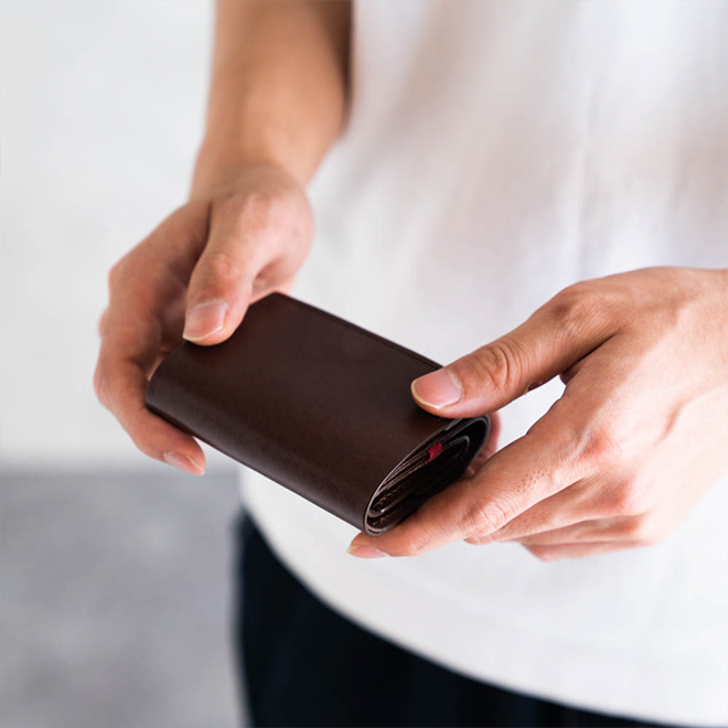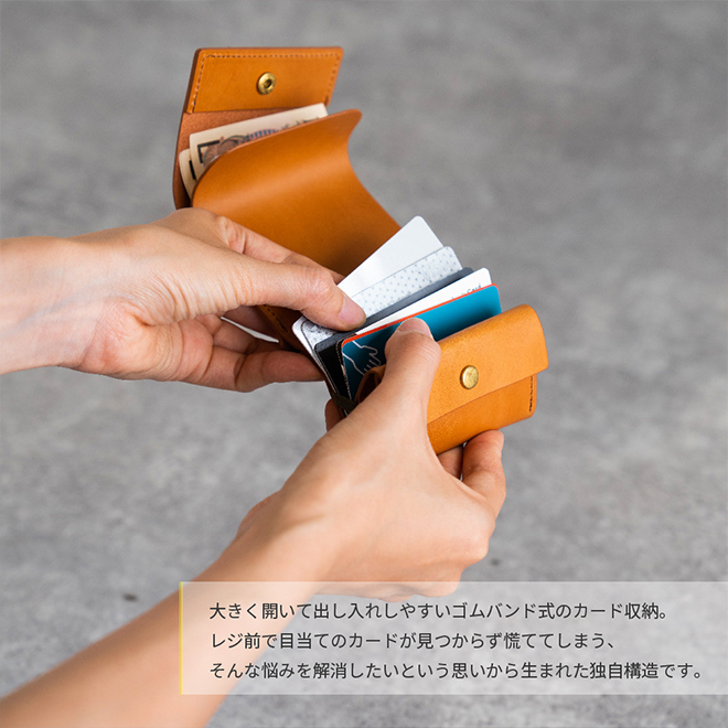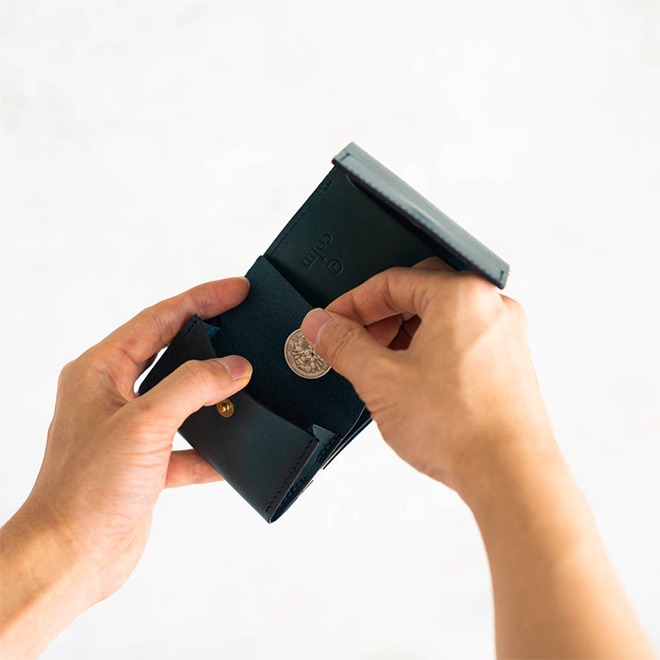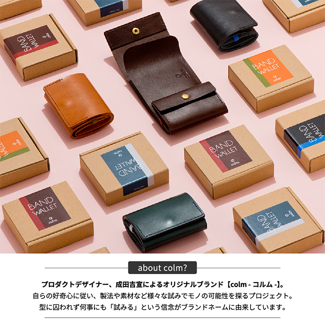 使い勝手を検証し、さらに飽きのこないシンプルな形状を追求し完成したこのお財布は「レジ前でうまくカードが見つけられず焦る人」を1人でも減らしたい、そんな想いでcolmデザイナーの成田氏によって生み出されました。
