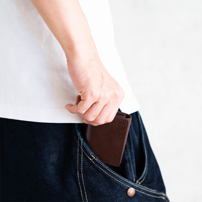 コンパクトサイズで手馴染みが良く、パンツの前ポケットにも滑らかに出し入れ可能。