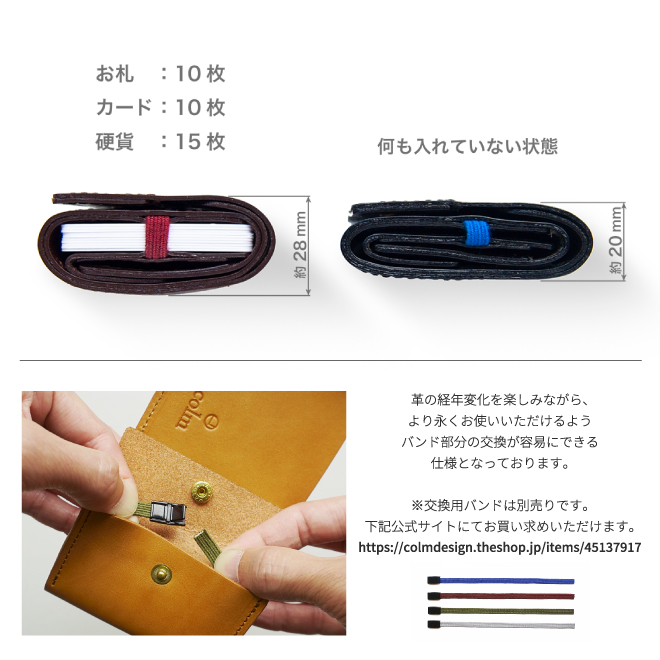 新しい相棒に、時の経過が楽しみになるcolmのバンドウォレットはいかがでしょうか。