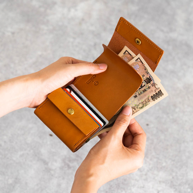 お札10枚、カード10枚、硬貨15枚が入るお財布。