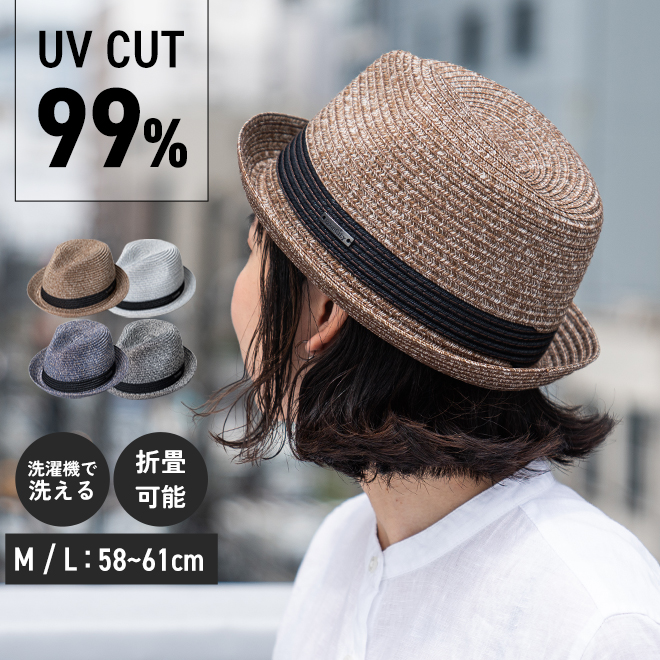 Home Wash Short Mannish ホームウォッシュショートマニッシュ ハット 麦わら 帽子 メンズ レディース 大きいサイズ 60cm たためる 洗える ツバ広 uv 折りたた