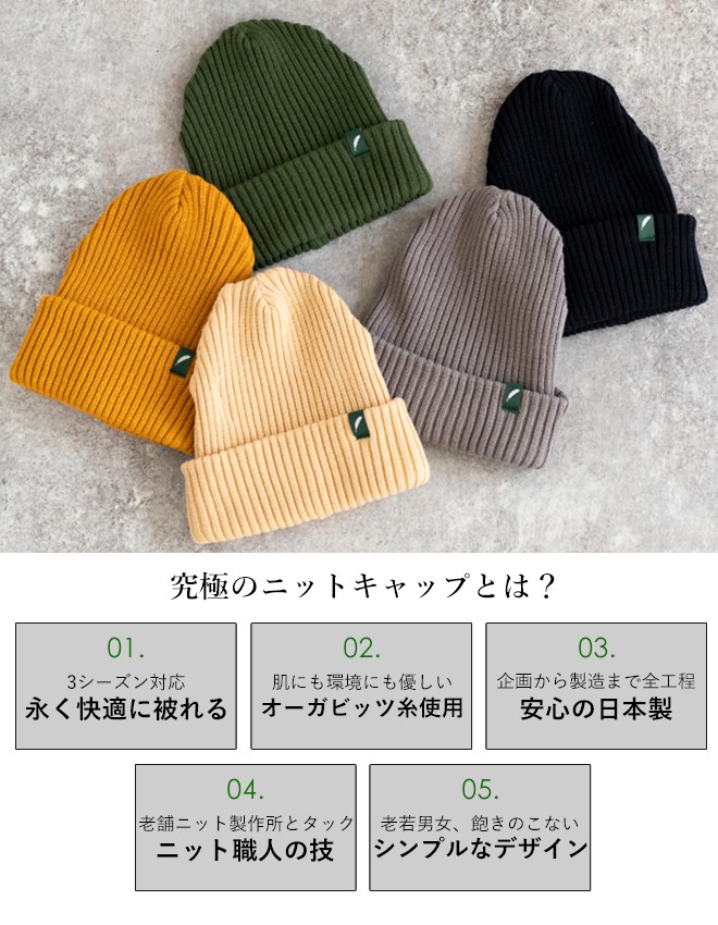 使用している素材の産地をはじめ、ニットキャップの企画から製造まで全て日本の高い技術で作られています。