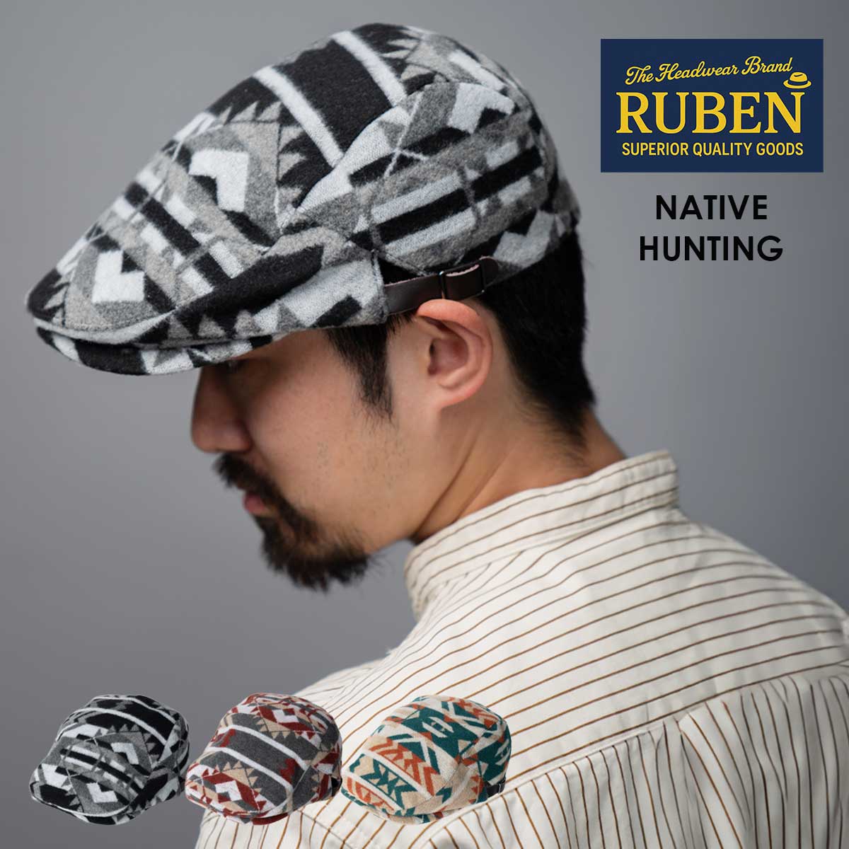 季節感たっぷりのネイティブ柄が目を惹く、秋冬の主役ハンチングです。