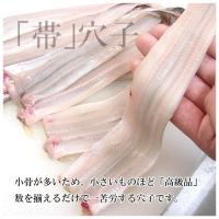 大変小骨が多い穴子。一口サイズ大の穴子は小骨が気にならないのと数が揃わないので大きい穴子よりかなり高級品。別名「帯穴子」。