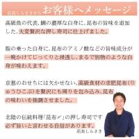 ご注文をお受けしてからの仕入れ・ 仕込みですので受付当日発送は申し訳ありませんがいたしかねます。 薄切りした白身を昆布に挟み込み、じっくりと旨みを染み込ませました。 昆布と相性の良い白身いならではの上品で味わい深いお寿司になりました。 飴色に染まった白身をどうぞご堪能ください