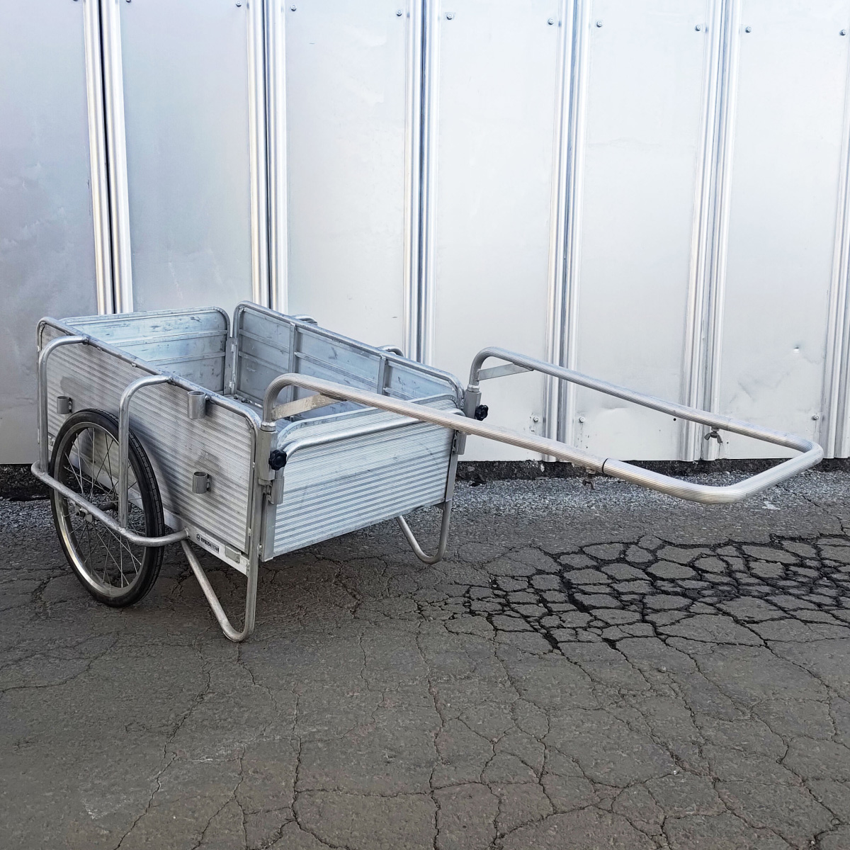 リアカー 折りたたみ アルミリヤカー 軽量 ノーパンクタイヤ PHC-130【中古】 動作良好! アルミ合金でできており、超軽量。 前後の板は取り外しが可能なので、小さな品物から長物まであらゆる運搬作業に最適です。 組み立てに工具は必要ありません。 前後の板とガードパイプを取り外し全てひとまとめにして収納ができるので収納場所に困りません。 |