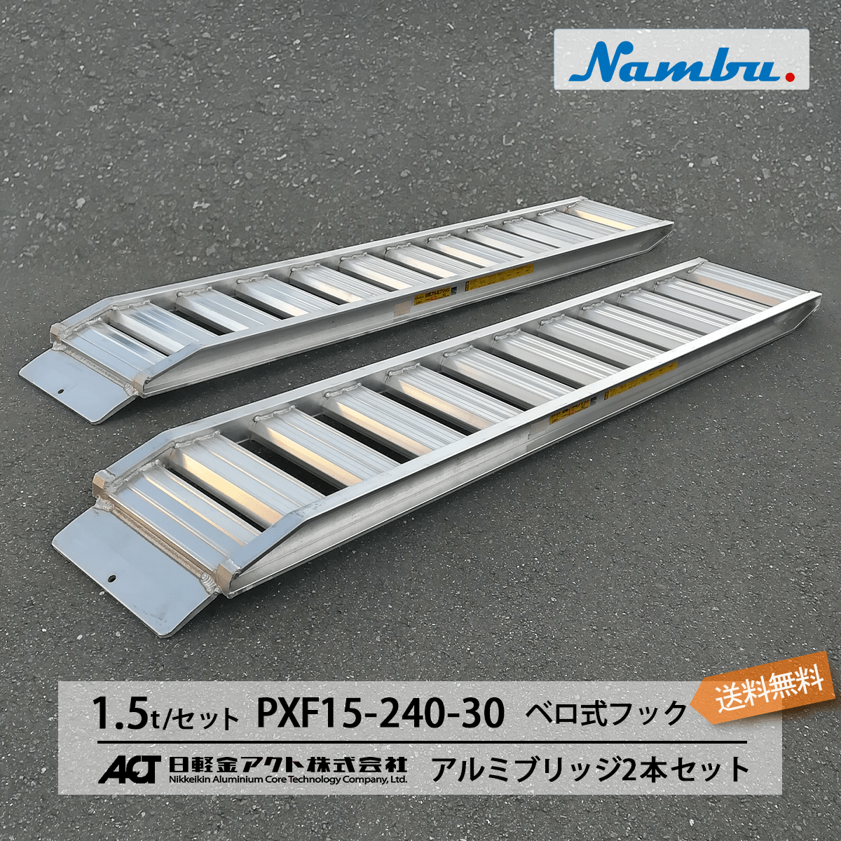 PXF15-240-30 アルミブリッジ 日軽金 1.5トン(1.5t) ベロ式フック 全長2550/有効幅300(mm) 2本 組 【建機用】