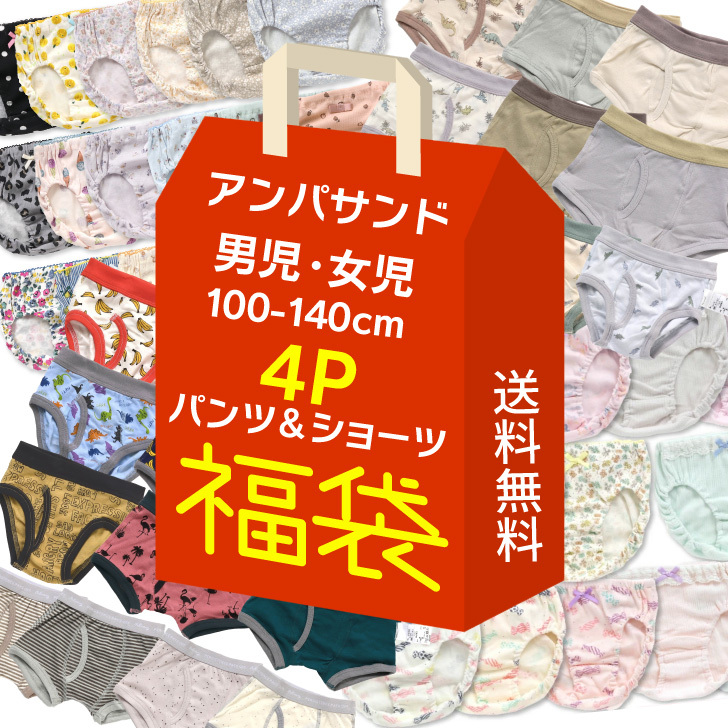 商品名:4枚セット 送料無料 キッズ パンツ ショーツ 下着 男の子 女の子 福袋 アンパサンド 綿100% 子供服 100 110 120 130 140 ampersand FO ポイント利用 爆買