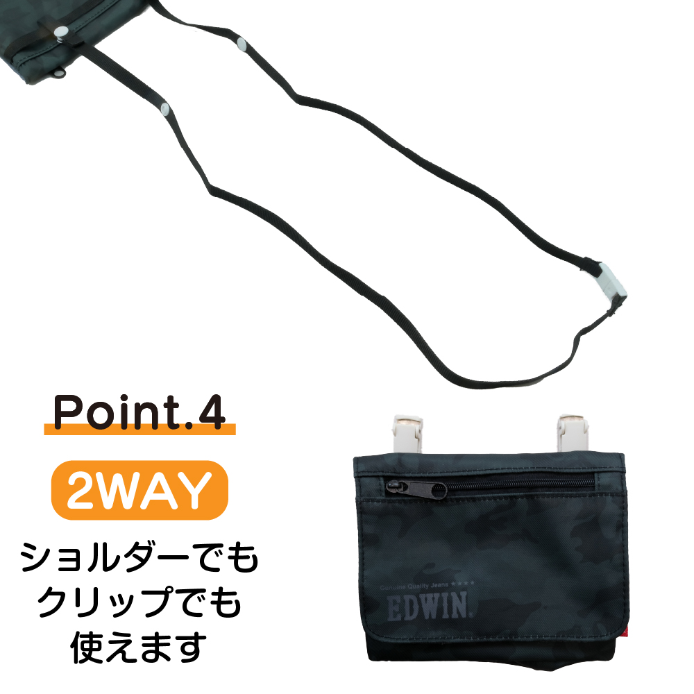 2WAYで使えるクリップポケットと