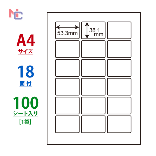 LDW18PC(L) ラベルシール 1袋 100シート A4 18面 53.3×38.1mm マルチタイプ 表示 商用ラベル 東洋印刷 ナナワード LDW18PC