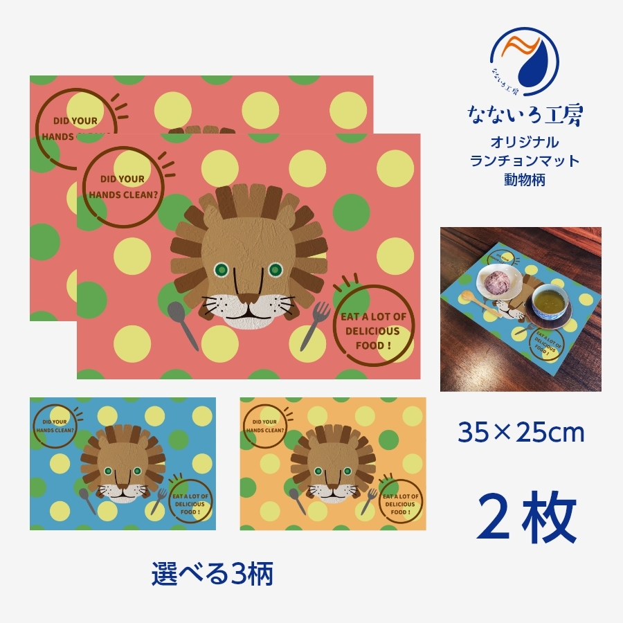 ランチョンマット(35cm×25cm) 2枚セット ビニール素材 撥水 ライオン アニマル 動物 男の子 女の子 子供 幼稚園 給食 小学校 かわいい