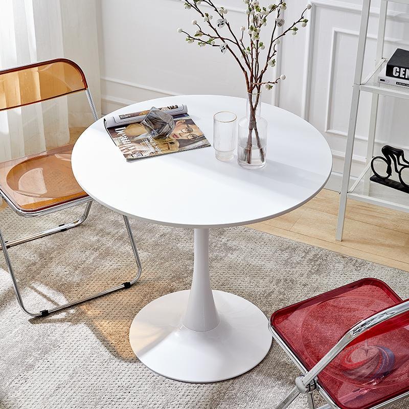 脚の部分はスリムで空間を圧迫せずコンパクトリビングのアクセントに最適なチューリップテーブル。愛らしいフォルムとシンプルな色合いが明るい印象を演出します
