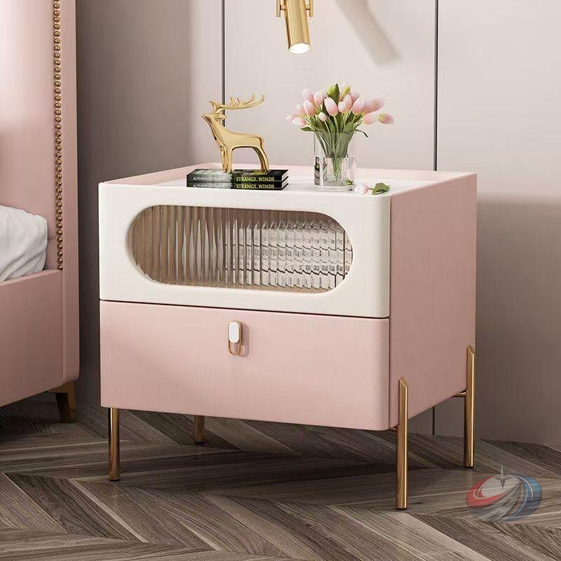 ベッドサイドテーブル 大理石調 セラミック 北欧 晟恒中馳 引き出し付きで小物整理をしやすく マイクロファイバーレザーで上品に見せやすい一台