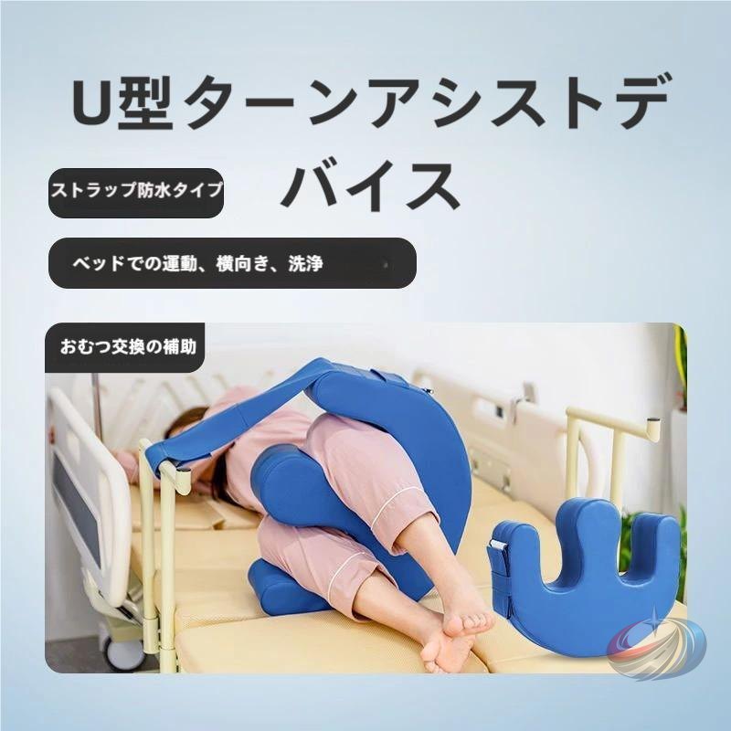 患者用ターニングデバイス U型介護寝返りクッション 床ずれ防止 リハビリ用具 看護 車椅子用クッション 高齢者、患者、身体障害の介護に適用 PUレザー 防水 青い