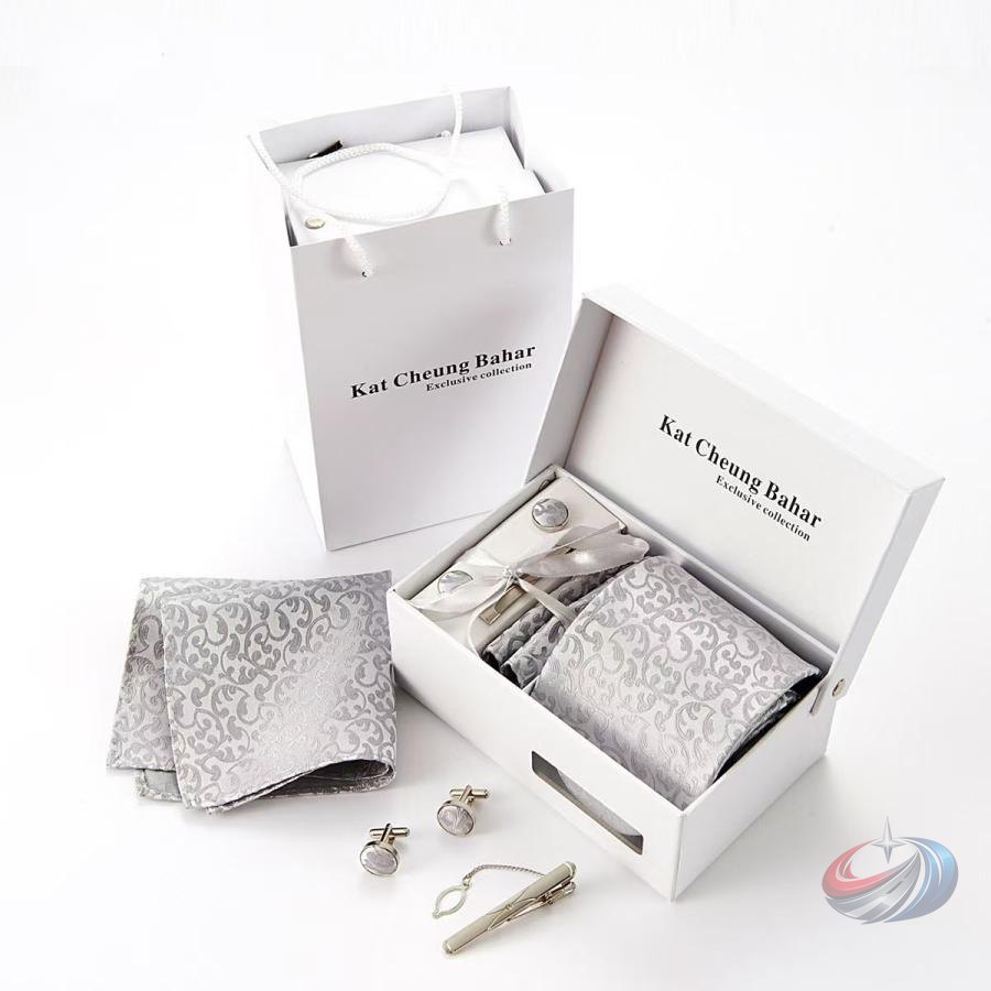 フォーマルなイベントに便利なネクタイ -ネクタイピン -ポケットチーフ -カフスボタンの4点セットです