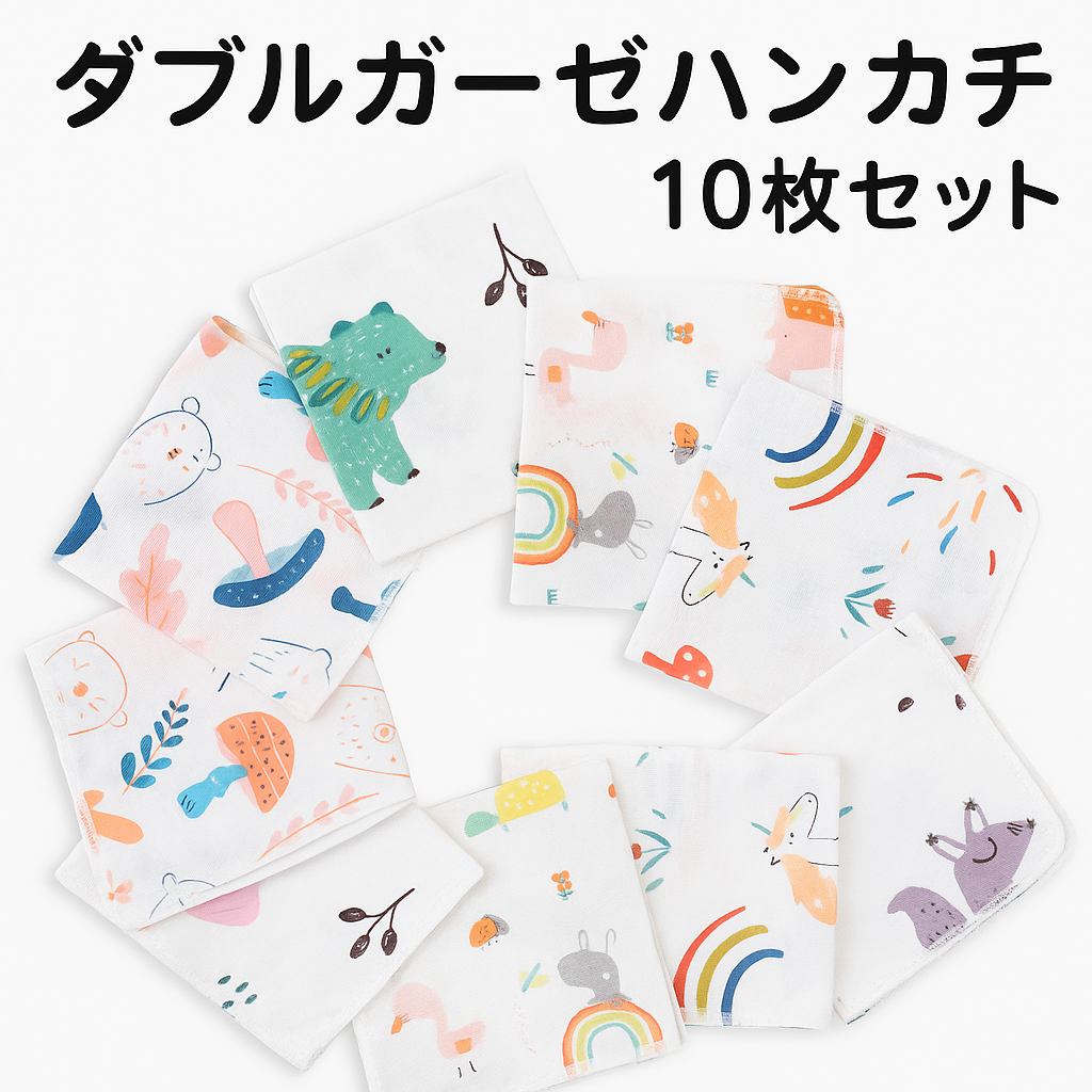 ガーゼハンカチ ベビー セット 赤ちゃん 沐浴 出産準備 ガーゼタオル 綿100% コットン 幼稚園 保育園 かわいい 新生児 2層ガーゼ 薄手