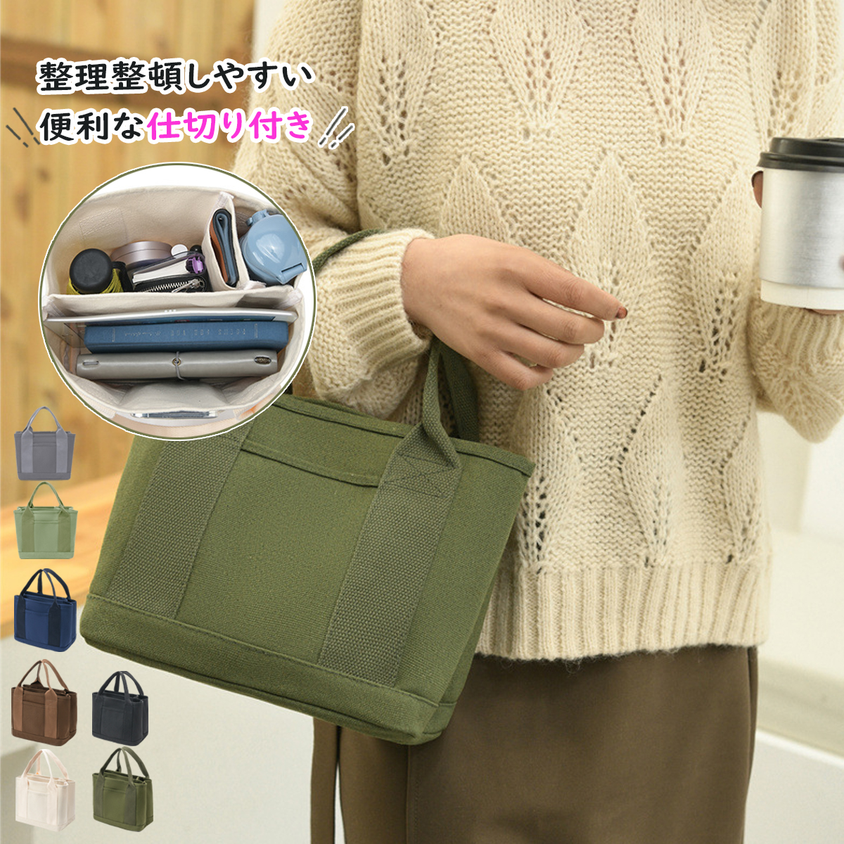トートバッグ レディース キャンバス 帆布 ミニトートバッグ 仕切り おしゃれ かわいい 軽量 軽い 小さめ 大容量 通勤 通学