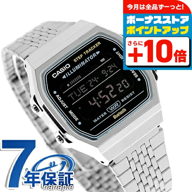 7年保証キャンペーン カシオ CASIO カシオ コレクション スタンダード クオーツ Bluetooth 海外モデル メンズ 腕時計 ABL-100WE-1BDF CASIO Collection STANDARD デジタル ブラック ◆角型フォルムのクラシックデザインに、日常で役立つ機能を備えたモデルです。デジタル液晶のシンプルなケースに、細やかな輝きを放つ多列タイプのメタルバンドを採用し、腕馴染みのよいフラットなフォルムに仕上げました。センサーが体の動きを感知し、歩数を自動的にカウント。その日の歩数を液晶画面でお知らせします。また、Bluetoothでスマートフォンと連携し、時計の時刻を自動修正。時計の設定をスマホのアプリ上で簡単に設定できます。さらに、時計で計測した歩数データなどをアプリに転送。ライフログとして日々の健康管理に役立てられます。クラシカルなデザインと便利な機能で、ヘルスコンシャスな毎日をサポートします。 日本未発売モデル