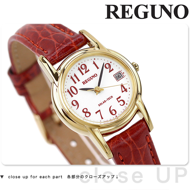 正規品 7年保証キャンペーン シチズン レグノ エコドライブ ソーラーテック レディス ストラップ KH4-823-90 CITIZEN REGUNO 腕時計 ブランド アナログ ホワイト レッド レグノより、ビジネスからカジュアルまでシーンを選ばない、デザイン性と機能性を兼ね備えたスタンダードウォッチです。エコドライブ ソーラーテック搭載のため、定期的な電池交換が不要。オールアラビア数字採用のインデックスは視認性が高く、3時位置に配置したカレンダー表示が実用性を確保しています。小ぶりで華奢なデザインが、腕もとで女性らしい可愛らしさを演出します。 発売日:15年9月発売 ギフト プレゼント 記念品 母の日 敬老の日 クリスマス 誕生日 結婚記念日 就職祝い 卒業祝い 還暦祝い 20代 30代 40代 50代 60代