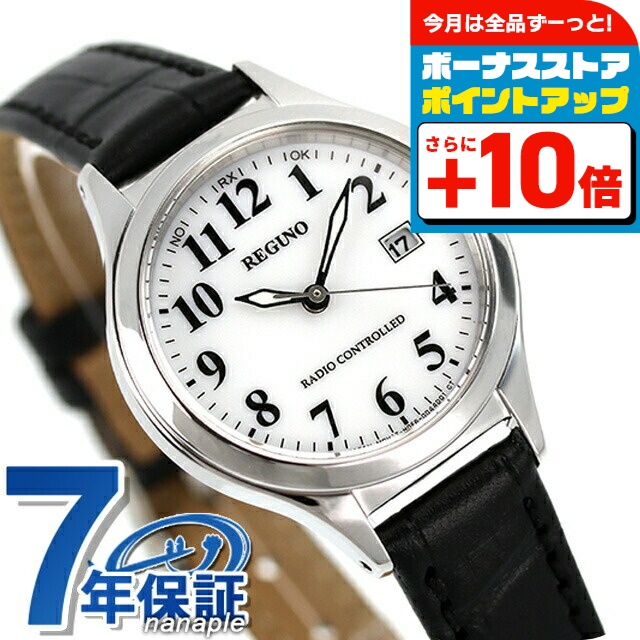 正規品 7年保証キャンペーン 送料無料 シチズン レグノ エコドライブ ソーラーテック エコドライブ ソーラー電波 レディース 腕時計 ブランド KS1-210-20 CITIZEN REGUNO SOLAR-TECH アナログ シルバー ブラック 黒 革ベルト ビジネスからカジュアルまでシーンを選ばないデザイン性と機能性を兼ね備えたスタンダードウオッチ。定期的な電池交換や時刻修正が不要なエコドライブ ソーラーテック電波時計です。5気圧防水、暗い場所でも時刻が確認しやすい夜光付き針など、価格と機能性のバランスを追求したコストパフォーマンスが高いモデルです。シンプルで見やすい文字板デザイン。ベーシックなアラビア数字インデックスを採用しています。カーフ革の型押しバンドが高級感を演出します。カジュアルスタイルにはもちろん、ジャケットやコートにも合わせやすくシーンを問わずお使いいただけます。プレゼントにもおすすめです。 発売日:23年01月発売 ギフト プレゼント 記念品 母の日 敬老の日 クリスマス 誕生日 結婚記念日 就職祝い 卒業祝い 還暦祝い 20代 30代 40代 50代 60代