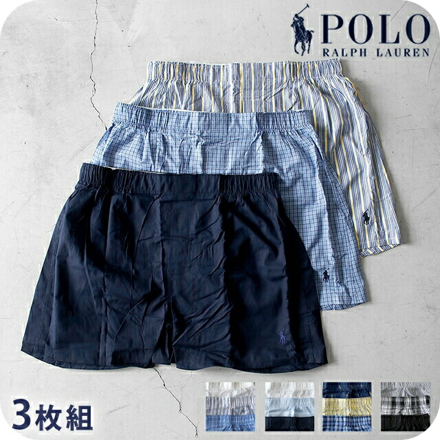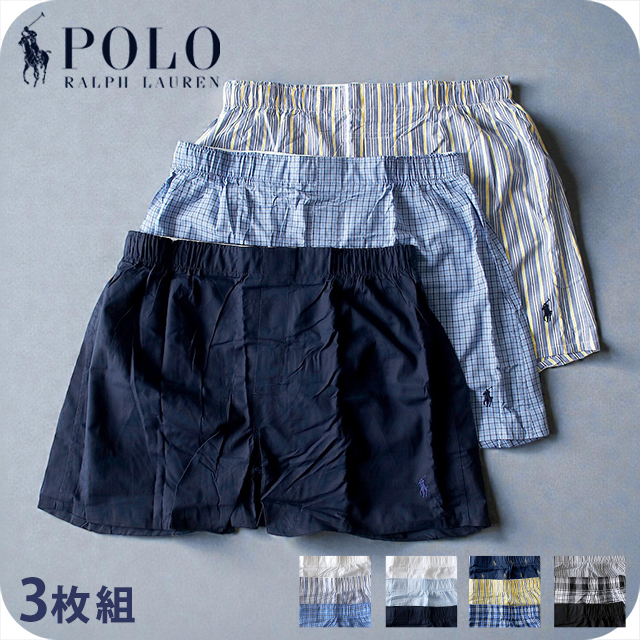 ポロ ラルフ ローレン トランクス 3枚セット メンズ Polo Ralph Lauren P3 Classic Fit Woven Boxer S M L ストライプ 下着 アンダーウェア ネイビー ストライプ チェック ホワイト ライトブルー イエロー ブラック 白 黒 選べるモデル
