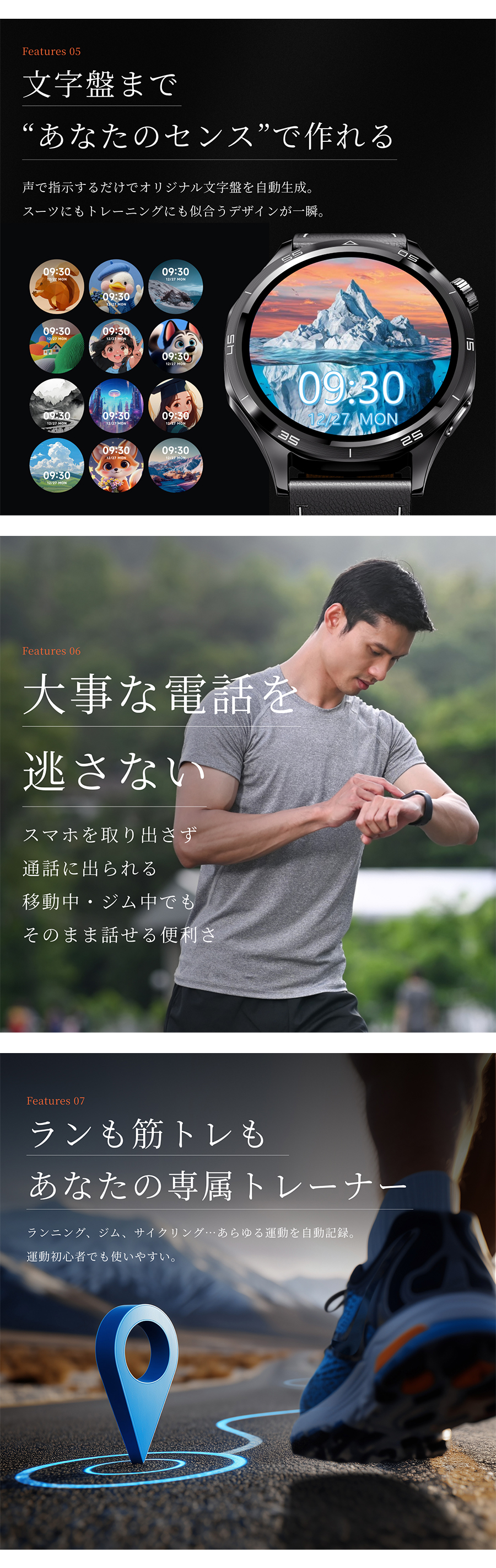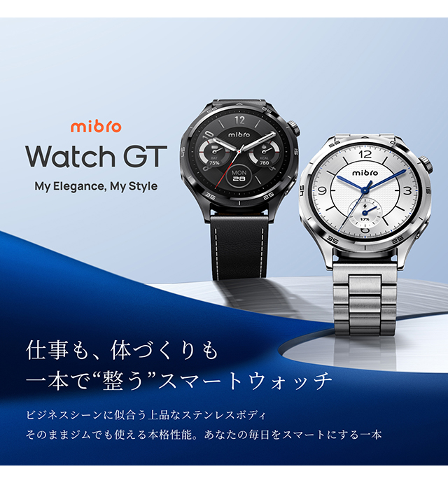 正規品 ミブロ Bluetooth 替えベルト 充電式クォーツ メンズ スマートウォッチ mibro Watch GT デジタル ブラック 黒 選べるモデル ◆「Mibro Watch GT」は、高級感あるステンレススチール仕上げと1.43インチの高精細AMOLEDディスプレイを採用し、スーツにもカジュアルにも馴染むデザインが魅力です。5つの衛星測位システムに対応した高精度GPSと100種類以上のスポーツモードを搭載し、ランニングルートや運動データを正確に記録。さらに、AI音声アシスタントによる操作や通話機能、詳細な睡眠分析など、日々の生活をサポートする機能が充実しています。iOS/Androidアプリとのスムーズな連携や、充電の手間を減らすロングバッテリー性能も備えた、多機能オールインワンスマートウォッチです。 SP380017-C24 SP380017-C240