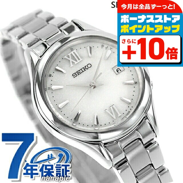 正規品 7年保証キャンペーン 送料無料 セイコーセレクション Sシリーズ ソーラー電波 丸型 日付付き 流通限定モデル ソーラー電波 レディース 腕時計 ブランド SWFH131 SEIKO SELECTION アナログ シルバー 実用性とデザイン性、双方を極めたSEIKO SELECTIONレディスソーラー電波モデルが登場。現ラインナップには少ない「日付つき」のソーラー電波キャリバーを採用し、実用機能を高めました。ダイヤルには12時・6時位置にカーブがかった大きく見やすいローマ植字を採用し、他9か所も植えタイプのインデックスをレイアウトすることで高い視認性を実現。立体的でメリハリの利いたダイヤルレイアウトと艶のあるダイヤルベースが高い質感を感じさせるデザインです。ガラスは女性らしい手元を演出するカーブ形状を採用。柔らかで丸みのあるケースとの組み合わせが魅力的なシルエットです。 発売日:2023年5月発売 ギフト プレゼント 記念品 母の日 敬老の日 クリスマス 誕生日 結婚記念日 就職祝い 卒業祝い 還暦祝い 20代 30代 40代 50代 60代