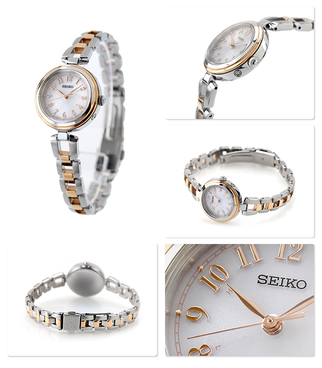 正規品 7年保証キャンペーン 送料無料 セイコーセレクション Sシリーズ ブレスレット 日本製 レディース 腕時計 SWFH148 SEIKO SELECTION アナログ ホワイト シルバー ピンクゴールド 白 ◆ヨーロッパのエスプリと実用性のあるデザインで 長く愛せるブレスレットウオッチが登場。装飾を追加するのではなく、数字のフォントや目盛りなど実用性の中に腕時計が美しく見える要素を盛り込みました。ヨーロッパで古くから愛されているクロックからインスピレーションを受けた書体をあしらい、時代に左右されない解放感のある美しさと視認性を両立しています。針は細めですっきりとしたリーフ型の針を採用、分目盛りは読み取りやすいように外側にレイアウトし、電波時計としての使いやすさにもこだわりました。分目盛りのミニレール上に、丸ピンを12か所あしらい、ダイヤルに立体感と高級感を実現。プレゼントにもおすすめです。 発売日:2025年5月発売