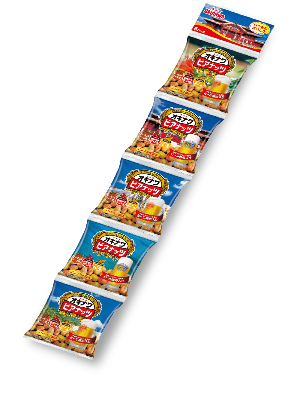 ■原材料:落花生、寒梅粉、ザラメ糖、アーモンド、水飴、小麦粉、ポークエキス(卵・大豆を含む)、植物油脂、澱粉、しょうゆ、チーズパウダー、チリパウダー、ウコン粉末、カレー粉、オリオンパウダー、胡椒、パプリカパウダー、ガーリックパウダー、ビール酵母、島唐辛子粉末/重曹、調味料(アミノ酸等)、香料、酸味料