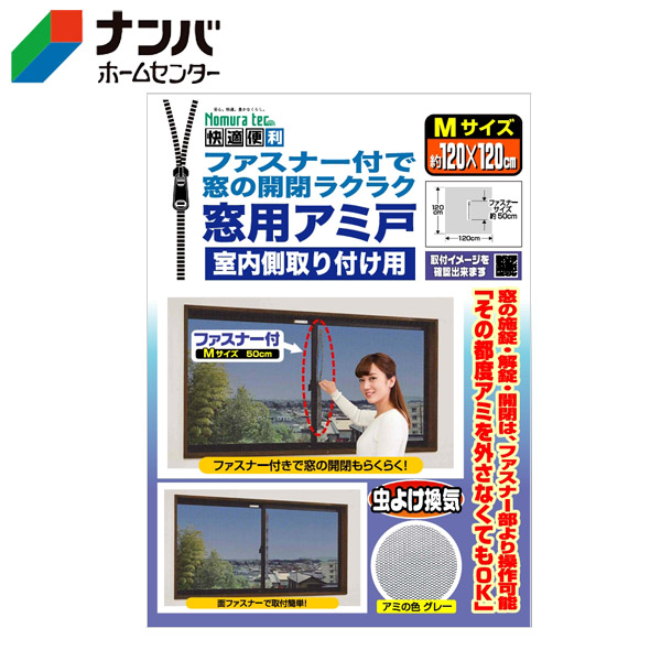 JAN 4909314210791【ノムラテック】網戸 快適便利 ファスナー付で窓の開閉ラクラク 窓用アミ戸 Mサイズ【N-2051】