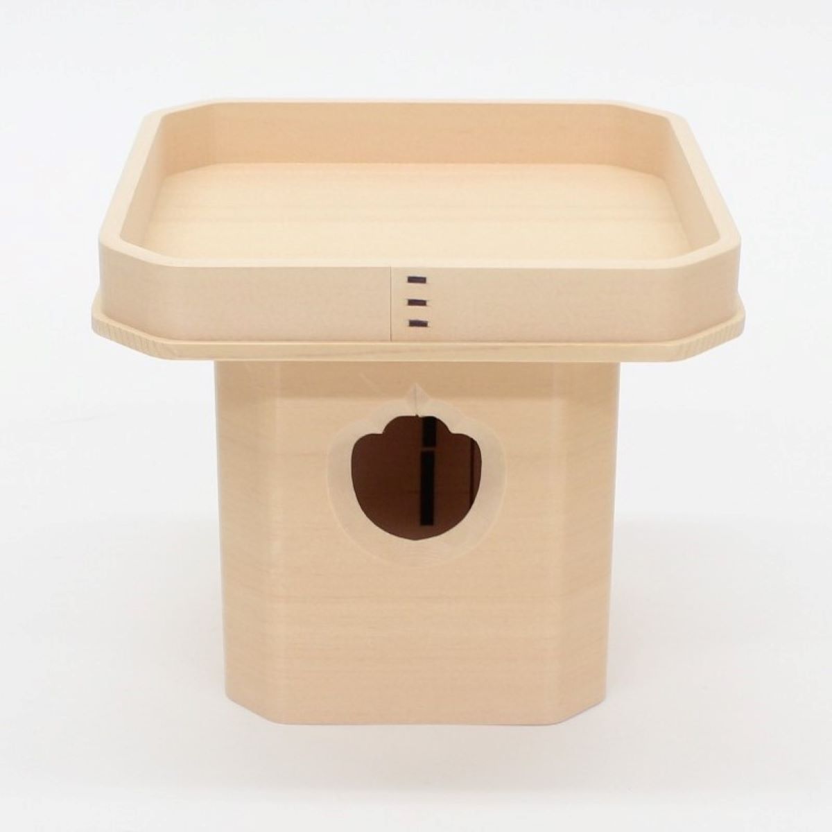 お餅やお供えを載せる桧製の三方です。お祭りの時、神酒所でお使いいただけます。