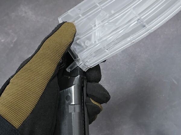 ![]() 各社電動ガン/ガスブローバックガンに対応した、M4マガジン形状のスピードローダーです。 スプリング式のマガジンには必須のアイテムです。 5つのマガジンアダプターがセット!コストパフォーマンスに優れたお買い得BBローダーです! 【対応機種】 ■東京マルイ 電動ガン 各種マガジン ■東京マルイ ガスブローバック 各種マガジン(ハンドガン、ライフル可) ■その他、海外製 AEG/GBB 【アダプターについて】 ![]() アダプターは全7種類が付属します。 ■スタンダード/次世代電動ガン用アダプター(標準搭載) ■東京マルイ ガスブローバックガン用アダプター(ローダー本体に内蔵) ■電動ハンドガン用アダプター(割りばしマガジン用) ・・・申し訳ありません。他に4種類のアダプターが付属しますが、当店にテストマガジンがなく、これ以上の対応機種は分かりませんでした。 お調べ出来次第、随時更新して参ります。 【外観】 ![]() 透明なクリアー樹脂製で、内部に装填したBB弾の残弾数が一目で分かります。 【BB弾の入れ方】 ![]() 本体上部にある流し込み口をスライドさせて開き、BB弾を流し込みます。 別途、BBボトルをご用意いただくと、こぼれにくくて便利です! 流し込み口の反対側には、ローディングレバー、レバーロックボタンがあります。 【東京マルイ ガスブロ用アダプター】 ![]() 東京マルイ ガスブロ対応のアダプターは、BBローダー本体に内蔵されています。 このBBローダーなら、GBB用アダプターを失くす心配がなくて安心です!(ほかのアダプターを失くしてしまわないようご注意ください! 【使い方】 使用方法は一般的なBBローダーと同じです。 1.BBローダー内にたっぷりとBB弾を入れておいてください。 2.レバーロックボタンを押し、レバーを起こします。 ![]() 3.お使いのマガジンに合ったアダプターを装着し、マガジンのBBリップにローダーを押し当てます。 ![]() 4.ローダーがズレてしまわないよう注意しながら、ローディングレバーを繰り返し押し込みます。 【内容物】 ・BBローダー本体 x1 (AEG/GBB用アダプター標準搭載) ・BBローダーアダプター 5種 | ||||||