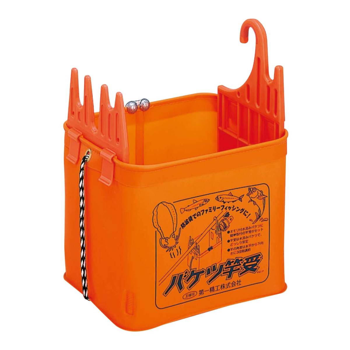 オモリ付水汲みバケツに差し込むだけで簡単に取り付けできる竿受がセット。