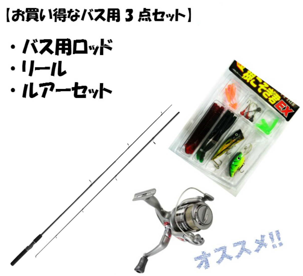 ブラック バス用 3点 セット ロッド リール ルアーセット 入門者におすすめ お買い得 (爆買)