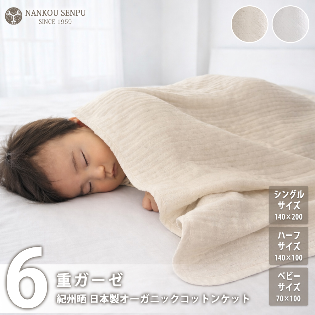 【日本製】6重ガーゼ オーガニック コットンケット 綿100% シングル ハーフ ベビー 生成り ホワイト 無添加 敏感肌 国産 敏感肌 赤ちゃん オールシーズン