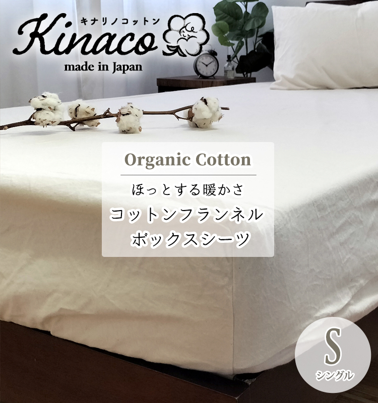 日本製 オーガニックコットンフランネル ボックスシーツ【シングル】100×200×30cm kinaco キナコ 無添加無漂白 無地 起毛 あったか 保温 丸洗いOK
