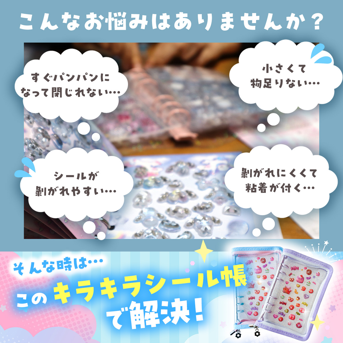 ラメ入り ファスナー チャック 可愛い 人気 大きいサイズ シールバインダー プレゼント ギフト