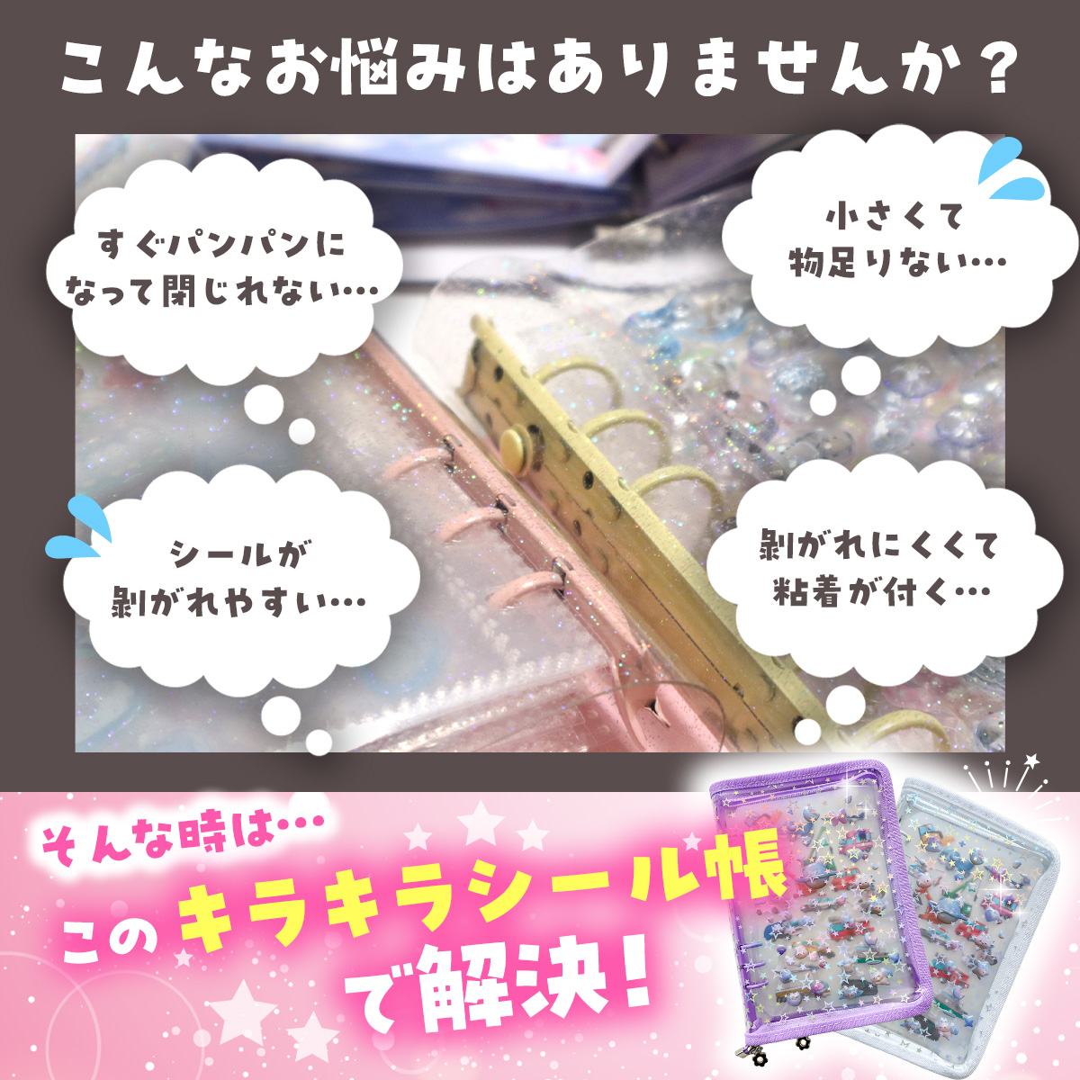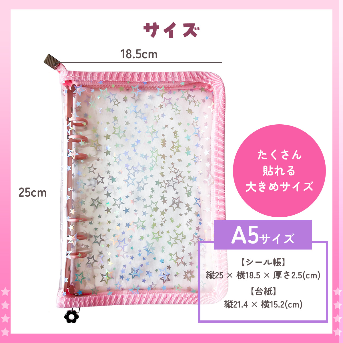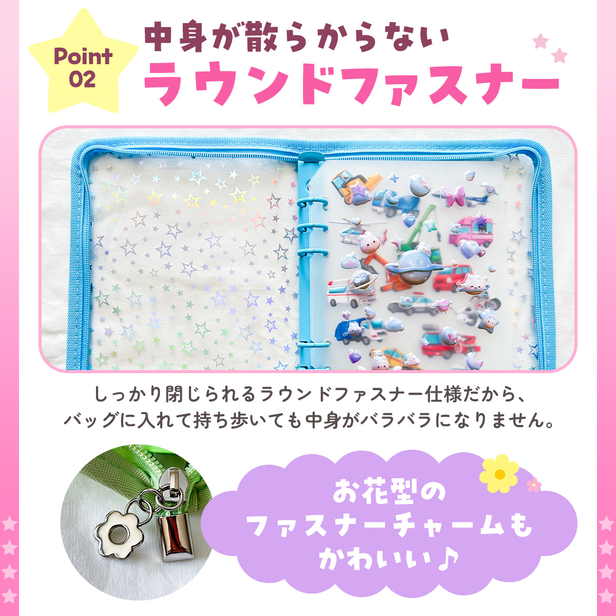 ぷくもりシール帳 バインダー 台紙付き シール帳 星柄 A5 ファスナー チャック式 子供 女の子 キッズ 立体シール 交換 大容量 かわいい