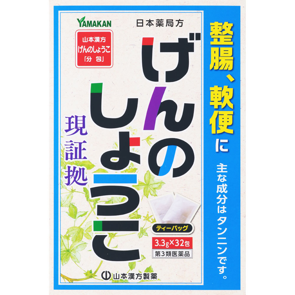 日本薬局方ゲンノショウコ・・・9.9g・・・整腸、止瀉(下痢止)を目的として煎用する。