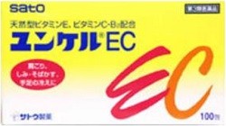 ■製品名:ユンケルEC■容量:60包■商品特長●天然型ビタミンE,ビタミンC,ビタミンB2酪酸エステル配合で,しみ・そばかす,日やけによる色素沈着の緩和に効果をあらわす,オレンジ味の顆粒です。●肩こり,手足の冷え・しびれなどの末梢血行障害による諸症状をやわらげます。■効能・効果●末梢血行障害による次の諸症状の緩和:肩・首すじのこり,手足のしびれ・冷え,しもやけ●次の諸症状の緩和:しみ,そばかす,日やけ・かぶれによる色素沈着●次の場合の出血予防:歯ぐきからの出血,鼻出血※「ただし,これらの症状について,1ヵ月ほど使用しても改善が見られない場合は,医師,薬剤師又は歯科医師に相談すること。」●次の場合のビタミンECの補給:肉体疲労時,病中病後の体力低下時,老年期