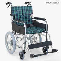 車椅子 介助式 背折れ 折りたたみ 車いす モジュールタイプ 緑チェック SMK30-3843GN