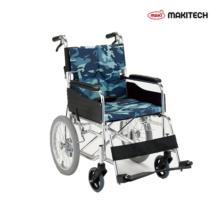 車椅子 介助式 背折れ 折りたたみ 車いす モジュールタイプ ブルー迷彩 SMK30-3843MBL