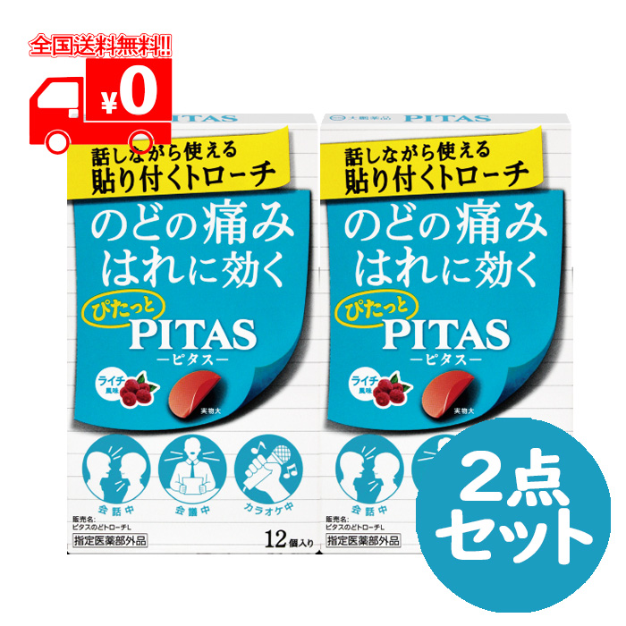 【指定医薬部外品】ピタス PITAS のどトローチ ライチ風味 (12個入) 2点セット のどの痛み・はれに【大鵬薬品】