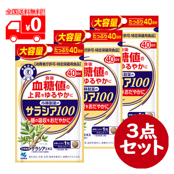 小林製薬のサラシア100 大容量(120粒/40日分) 3点セット 血糖値 特定保健用食品 サプリメント【小林製薬】