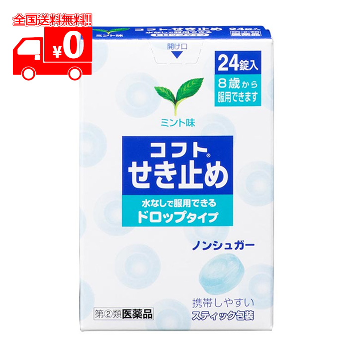 【指定第2類医薬品】コフトせき止め (24錠) ミント味 ドロップタイプ ノンシュガー【日本臓器製薬】