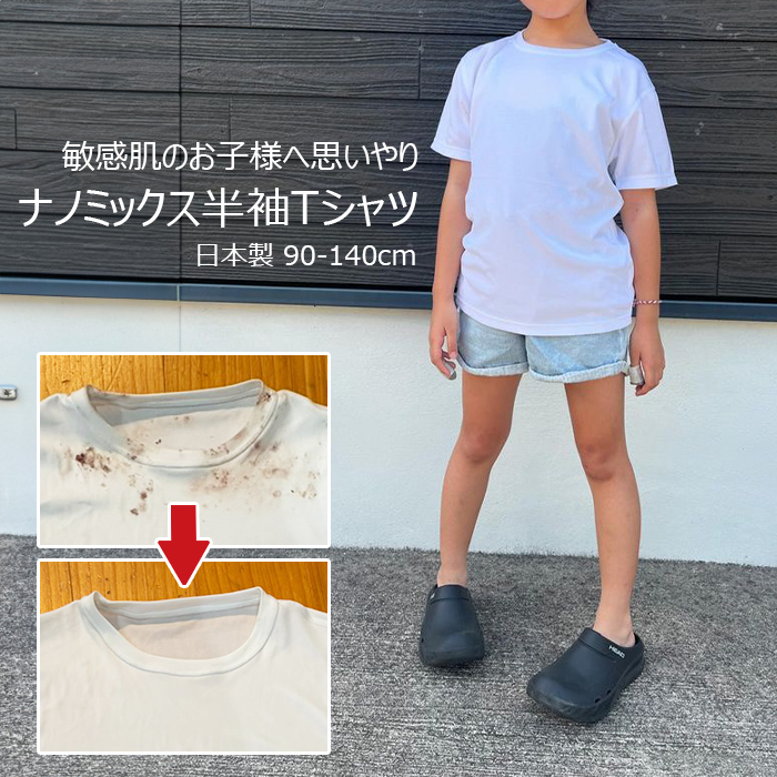 ナノミックス キッズ コンフォータブル半袖シャツ 敏感肌 アトピー ムレない かゆくならない 血液汚れ 掻きむしり対策 保温保湿 吸水速乾 子ども用 日本製