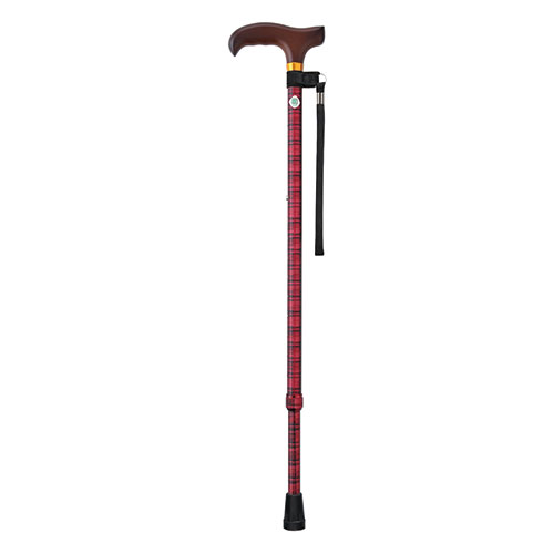 フジホーム スタンダードステッキ(杖) ベーシック 伸縮タイプ Sサイズ 始めの一本に最適 チェックレッド 取り寄せ商品