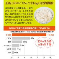 厚生労働省の「日本人の食事摂取基準」(2020年版)では、食物繊維の1日の摂取目標量を女性18g以上、男性21g以上(ともに18〜64歳)と定めていますが、「平成28年国民健康・栄養調査」によれば、多くの人は3g〜5g程度不足していることがわかりました。おかずで意識的に摂るのは手間がかかりますが、もち麦ならいつものごはんに加えるだけ。1食分(白米200g)をもち麦ごはんに変えると(もち麦3割)、食物繊維3.4gがプラスされ、茶碗1杯のごはんで約4gの食物繊維を摂ることができます。