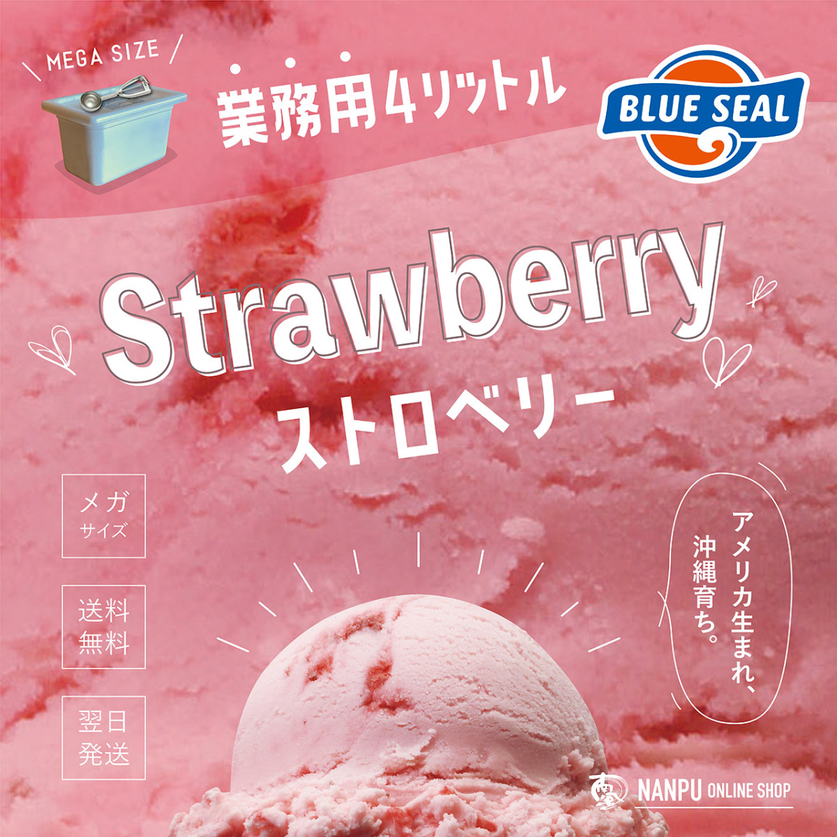 アイス ブルーシール ストロベリー 通販 業務用 大容量 4リットル 沖縄 アイスクリーム 仕入れ お取り寄せ BLUE SEAL ICE Strawberry