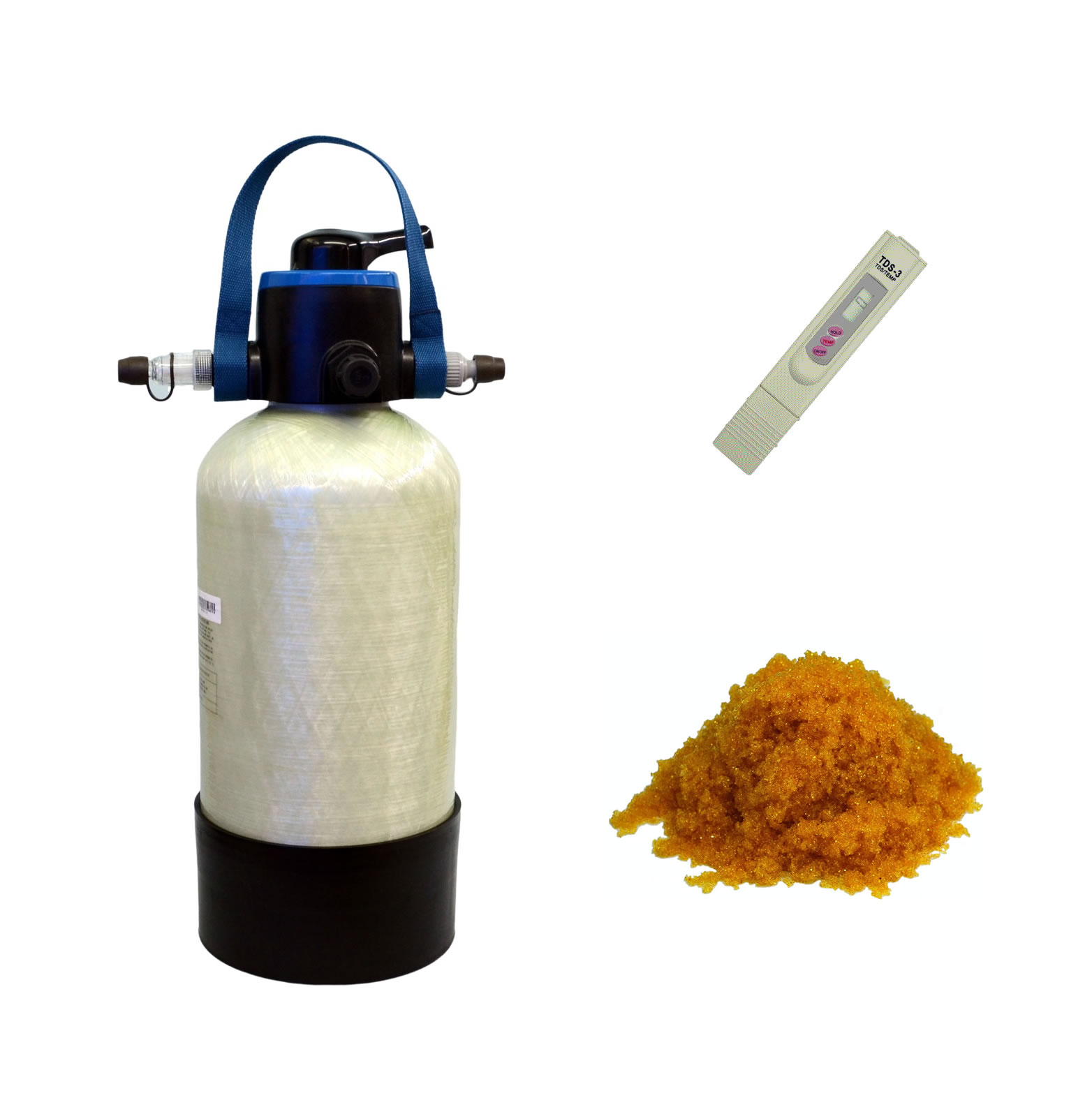 国外で製造された部品を輸入、それに国内部品を組み合わせ日本の当工房にて検査及び調整・組み立てを行っています。イオン交換樹脂は受注後、発送前に充填を行い速やかに発送いたします。
